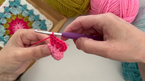 - Fasten off the light pink. Join a darker pink with a slip knot on your hook.