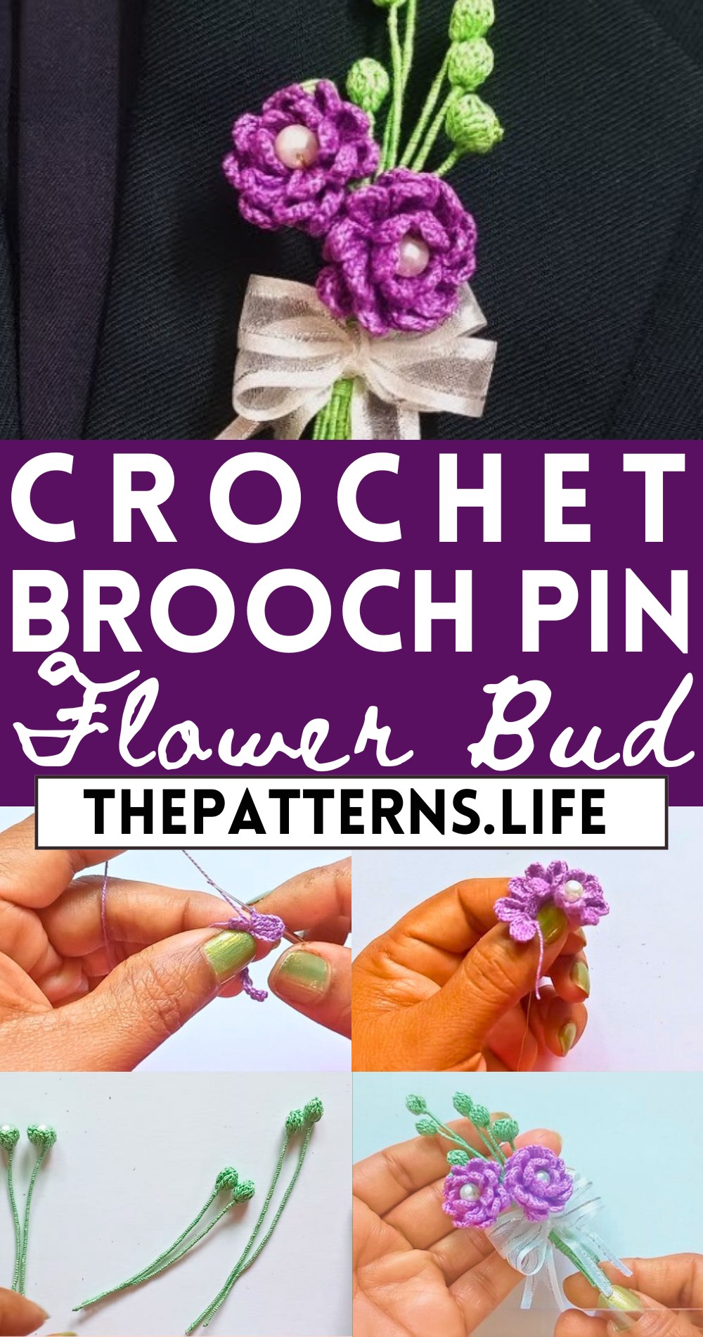 Pretty Crochet Flower Bud Brooch Pin – Free Pattern