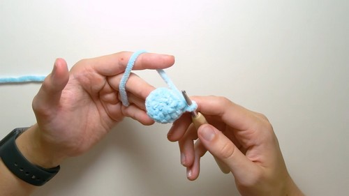 - Do three single crochets and a decrease twice (down to 8 stitches).