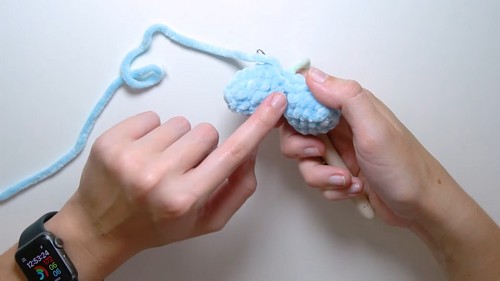 - Secure all yarn ends, trim excess, and tuck in any loose ends inside the plushy.