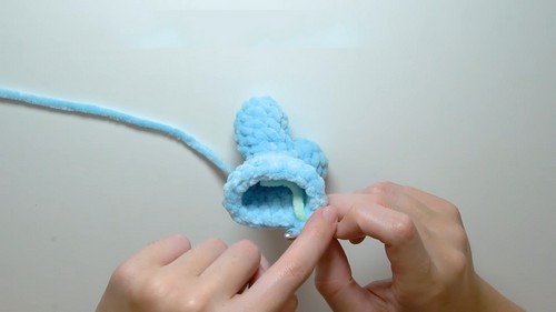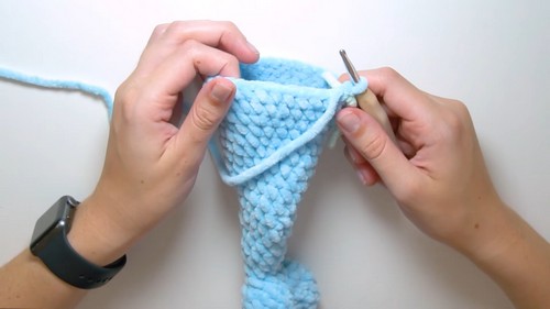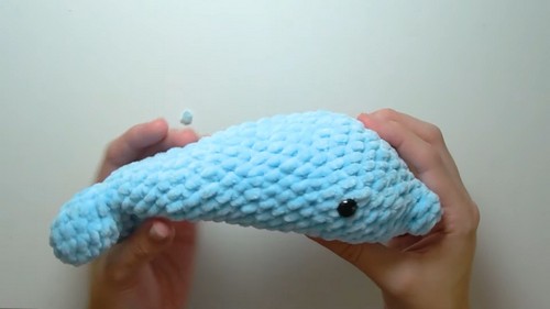 - Crochet around the second tail fin to join both fins together, ensuring they are evenly connected.