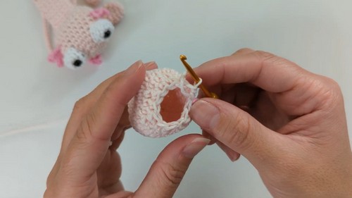 Continue with light pink yarn. Chain 1 and turn to start the body.