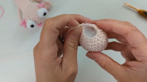 - Round 6: 1 sc, decrease repeat three times (6 sc). Close by sewing the opening.