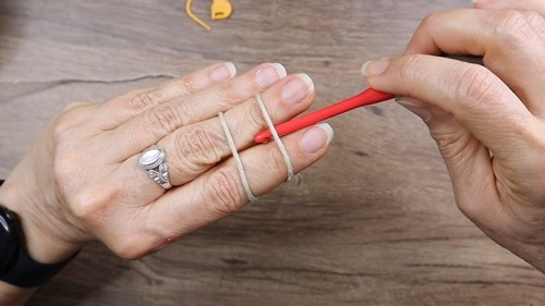 - Pull the tail to close the ring and create a circle. Mark the first stitch with a stitch marker since you will be working in continuous rounds.