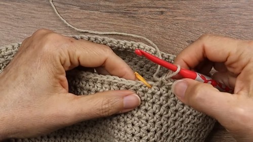 - Cut a long tail of yarn, pull through to secure it, and weave the tail back into your work with a yarn needle for an invisible join, making sure it doesn’t show on the front side.
