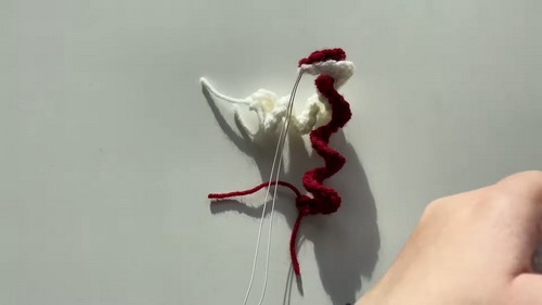 - If using regular wire, thread it through the joined yarn pieces; if using a folded piece, secure it around the yarn.