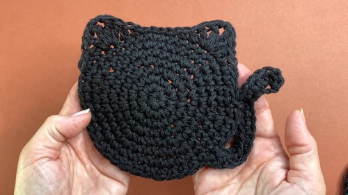 - Continue with the pattern of increasing 6 single crochets between each increase stitch if you wish to create a larger coaster that includes the cat’s body.