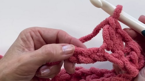 - In the very last chain, work one SC, chain one, and turn your work.