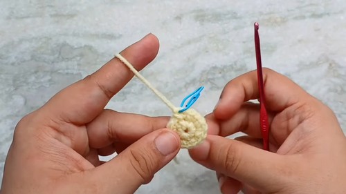 - Make 6 single crochets into the magic circle.