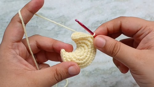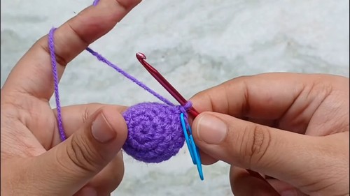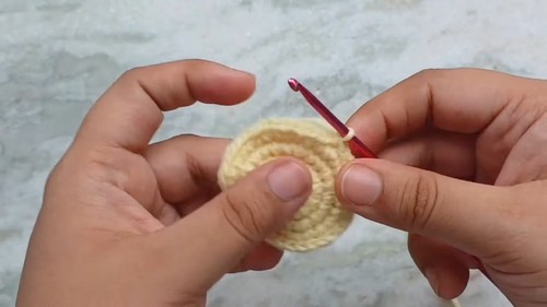 - Increase in each stitch around (2 single crochets in every stitch).