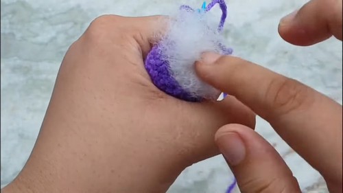 - Close off the amigurumi, stuff it, and weave the tail through to close it up.