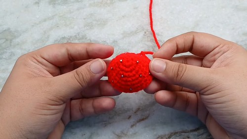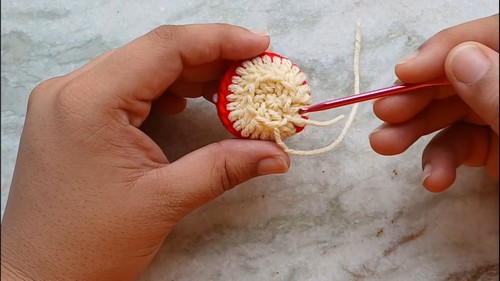 - Increase in each stitch around (two sc in each stitch). (12 sc)