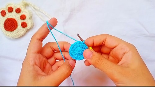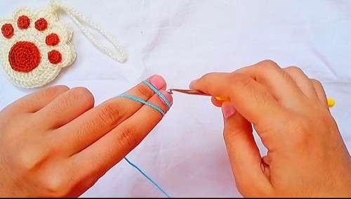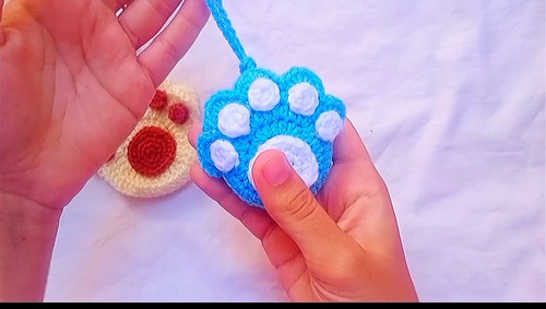 - Yarn (color of your choice for the paw and a different, contrasting color for the pads)