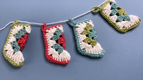 - Fasten on at the top of the stocking with a row of single crochets across the flat top part.