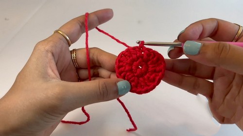 - Chain 2, then crochet 10 single crochets into the circle.