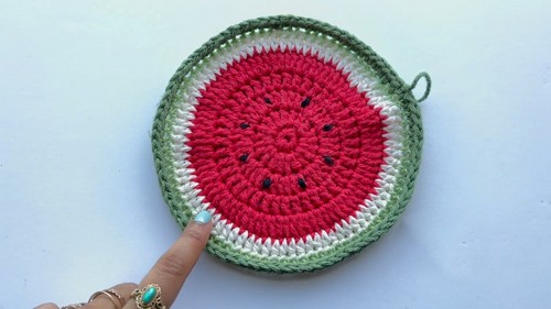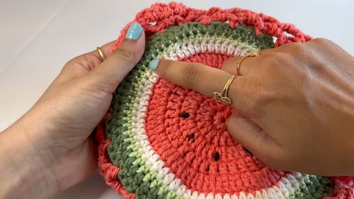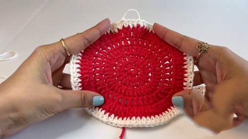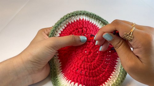 - Continue with watermelon color yarn.