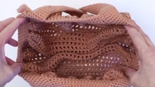 - For the side edge of the bag, put a single crochet in the first chain space.