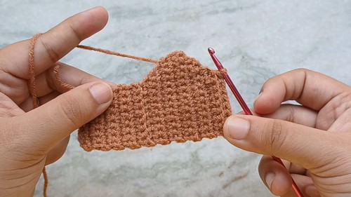 - Chain 1, turn, single crochet in the first 11 stitches, increase in the last stitch (13 single crochets now).