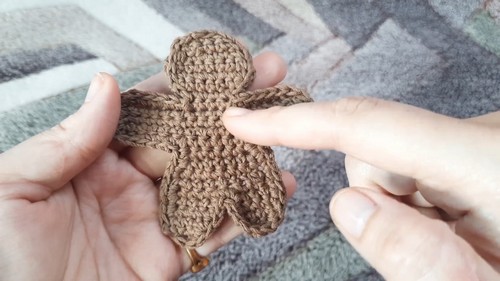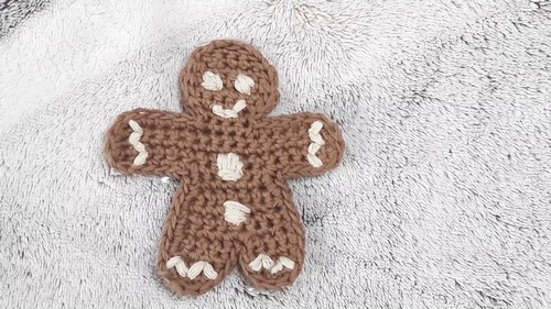 - Once all details are added, your crocheted gingerbread man is complete.