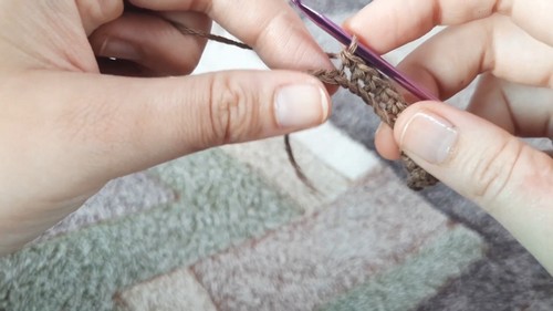 - Follow the pattern to create a row of four single crochets.