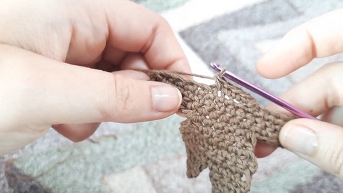 - Chain 1, turn your work, and make 16 single crochets back along the row.