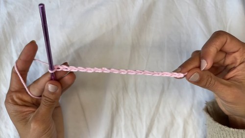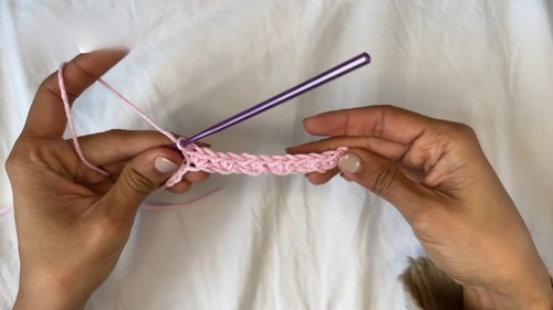 - Skip 1 chain, then make 2 single crochets into the next chain.