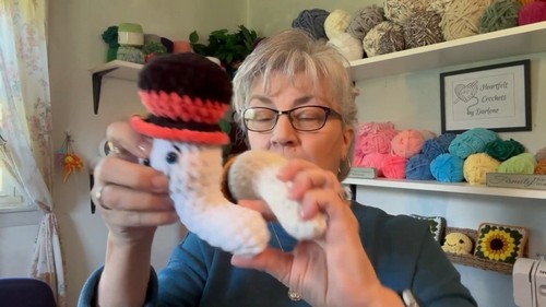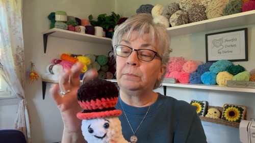 - Follow the specific instructions for the top hat, ensuring to crochet in the front loop only on the 11th row to create the hat’s brim.