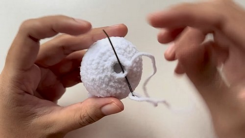 - Attach the eyes between the 6th and 7th rounds, 4 stitches apart.
