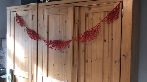 For an added eerie effect, use glow-in-the-dark or metallic yarn to make your spider web bunting truly stand out.