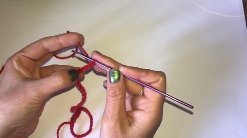 - Continue chaining in multiples that go up by two each round (chain 3, chain 5, chain 7, etc.), turning your work each time.