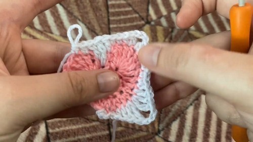 - Attach a new color (e.g., white) at the chain-1 space from the previous round with a slip stitch.