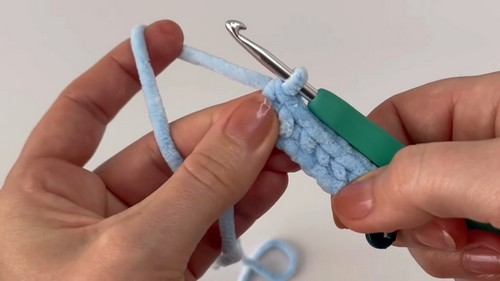 - Make 1 sc in each back loop only for 12 rounds.