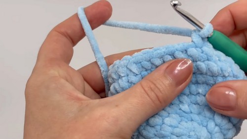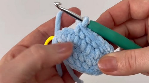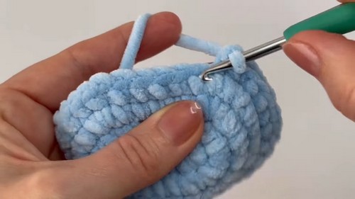 - In the very last stitch, make 2 sc.