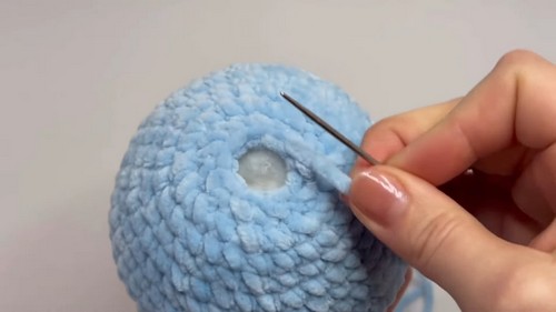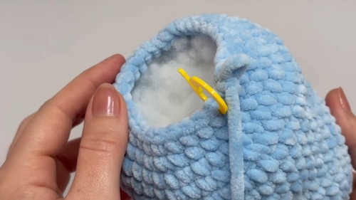 - Close the head with a yarn needle after the final decreases.