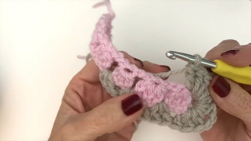 - Make 2 double crochets into the circle.