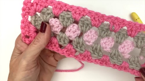 - Attach new yarn if needed at any corner.