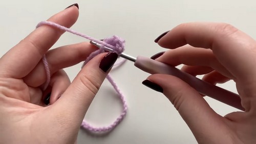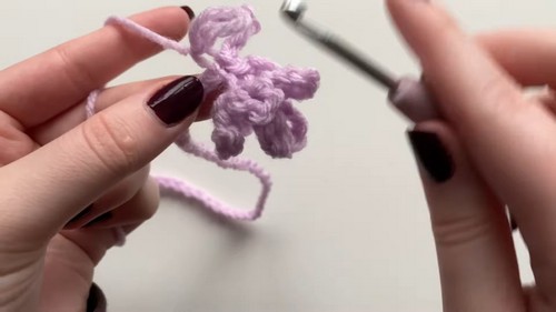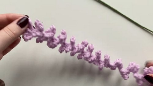 - Chain three and then slip stitch into the same chain to create the top of the lavender flower.