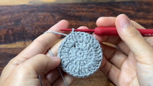 - Make 6 single crochets into the ring.