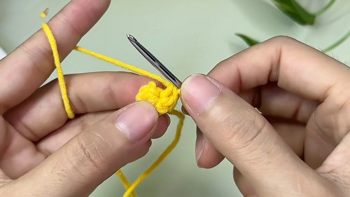 - Create a magic ring and make 6 single crochets (sc) into ring.