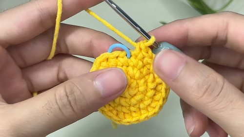 - 1 sc in the first two stitches, 2 sc in the next stitch; repeat from to around (24 sc).