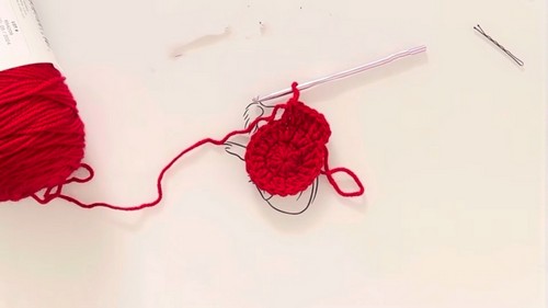 - After completing the 10 double crochets, join to the top of the beginning chain-3 with a slip stitch to close the circle.