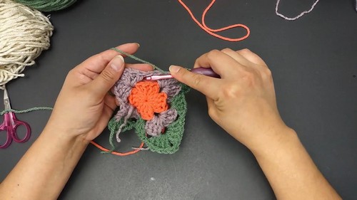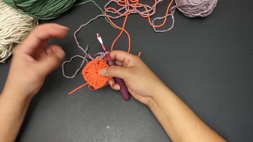 - Repeat the sequence of round 2, making sure to weave in ends as you work and change colors at the end of each round.