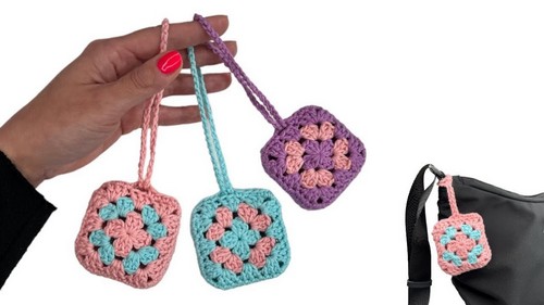 - This pattern involves crocheting a granny square in two rounds, creating a border, and then adding a loop for closure. The pattern is suitable for small items like headphones or lipstick.