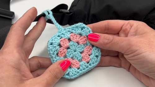 - Your granny pouch is ready! To close, pull the chain loop through the space on the opposite corner.