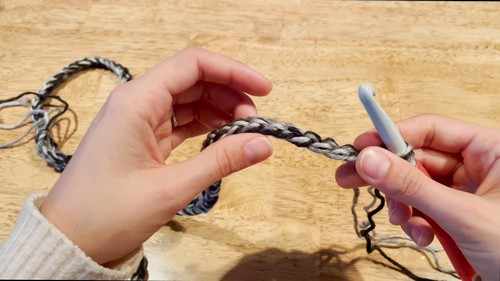- As you work and run out of yarn from your balls, seamlessly add in new yarn by laying the new strand over the hook and continuing your next stitch with the new yarn.