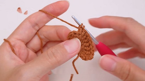 - Make 12 double crochets in a magic ring and sew onto the body between rows 2 to 3.