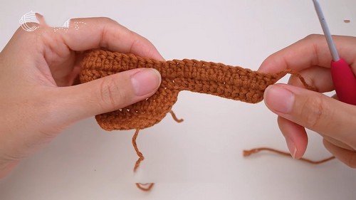 - After finishing the body, chain 12 on both sides to start the hand.