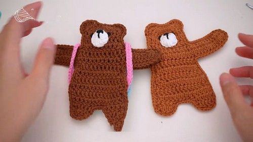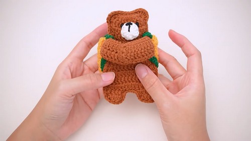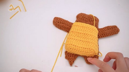 - Sew the bag to the body using leftover yarn.