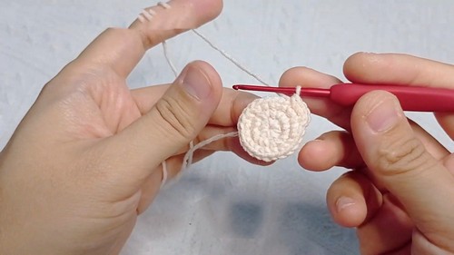 - Increase (inc) in each stitch around by crocheting 2 sc in each stitch from the previous round. Complete 16 stitches and sl st to finish the round. [16 stitches]