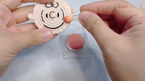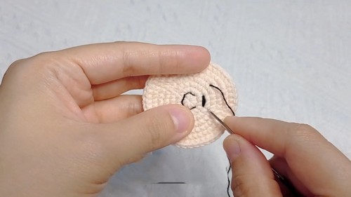 - Use the piece with the long thread to embroider Charlie Brown’s facial expressions onto one of the circles.